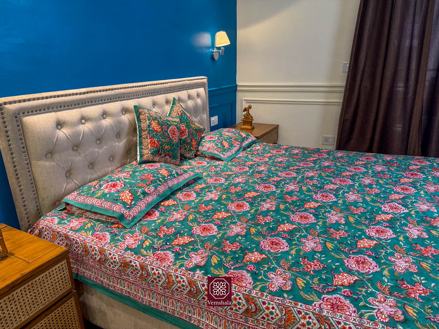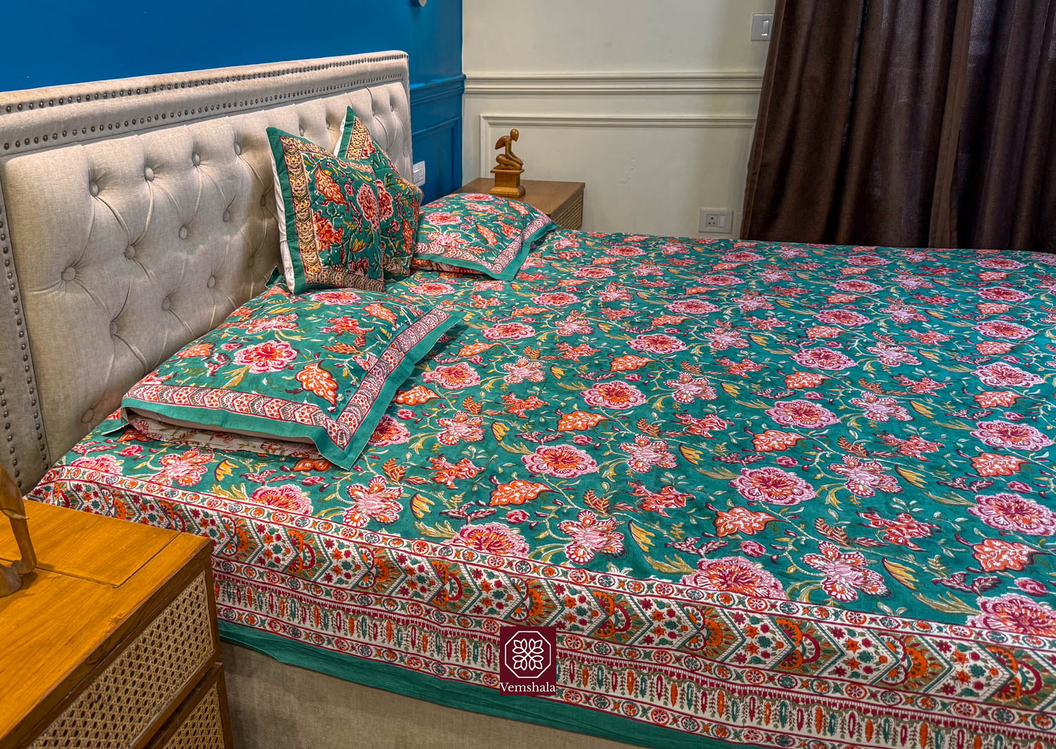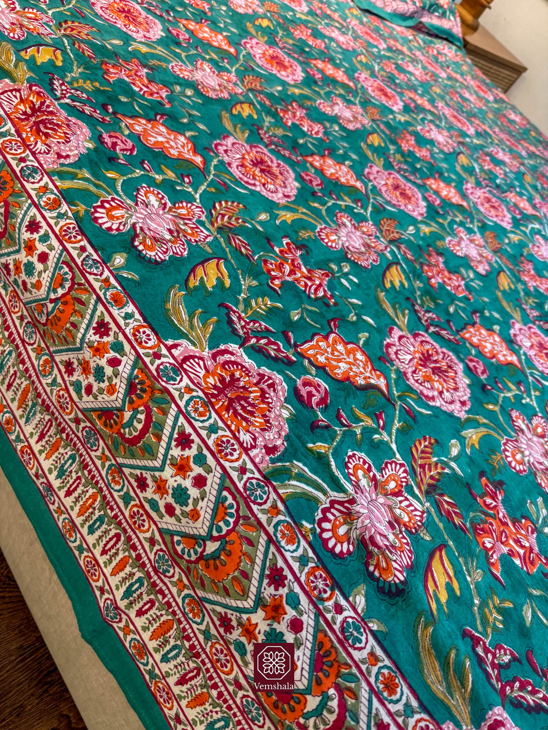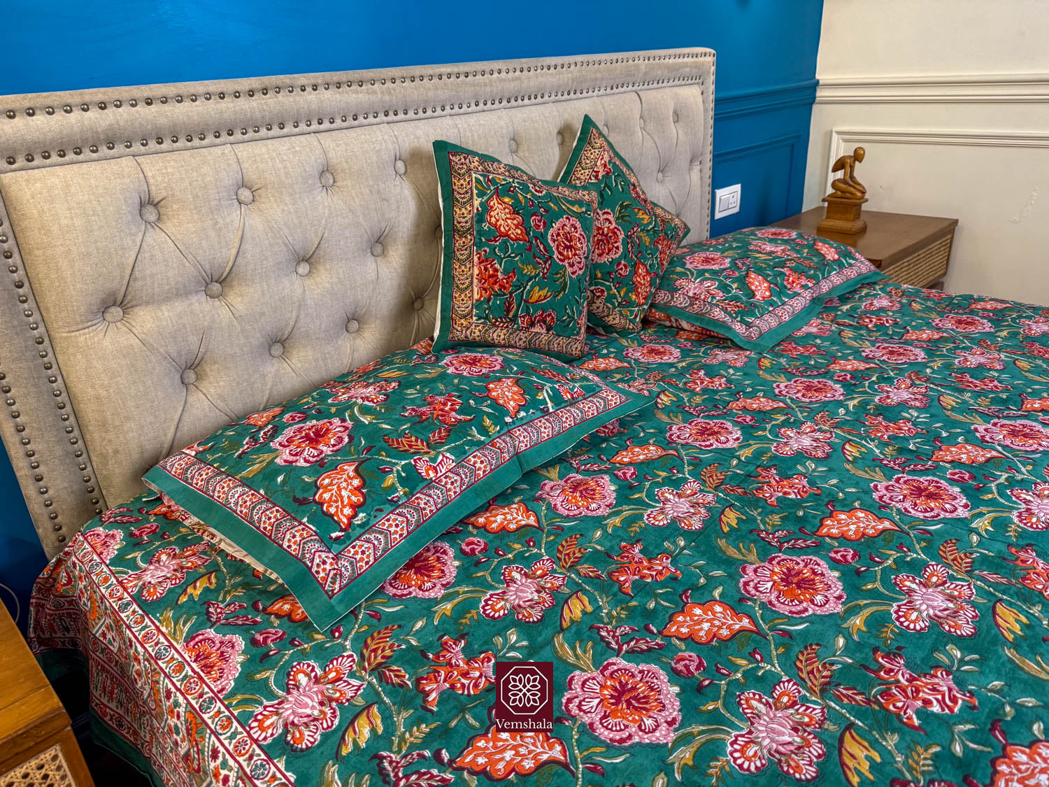 Genuine Cotton Bed sheet with 2 Pillow covers, made beautifully using wooden hand blocks at Sanganer, Jaipur.